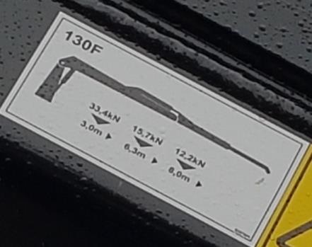 forța de ridicare a brațului este de 3,3 tone la 3 m / 1,57 tone la 6,3 m / 1,22 tone la 8 m